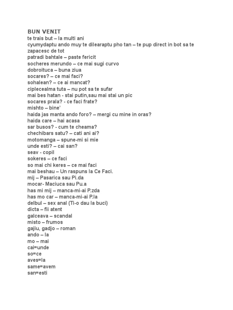 Tiganeasca Cuvinte Propozitii Obisnuite Wattpad