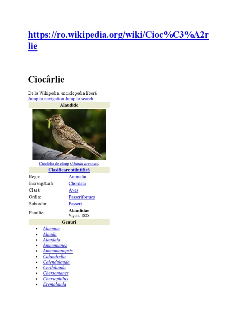 Ciocarlia Pasare Wikipedia