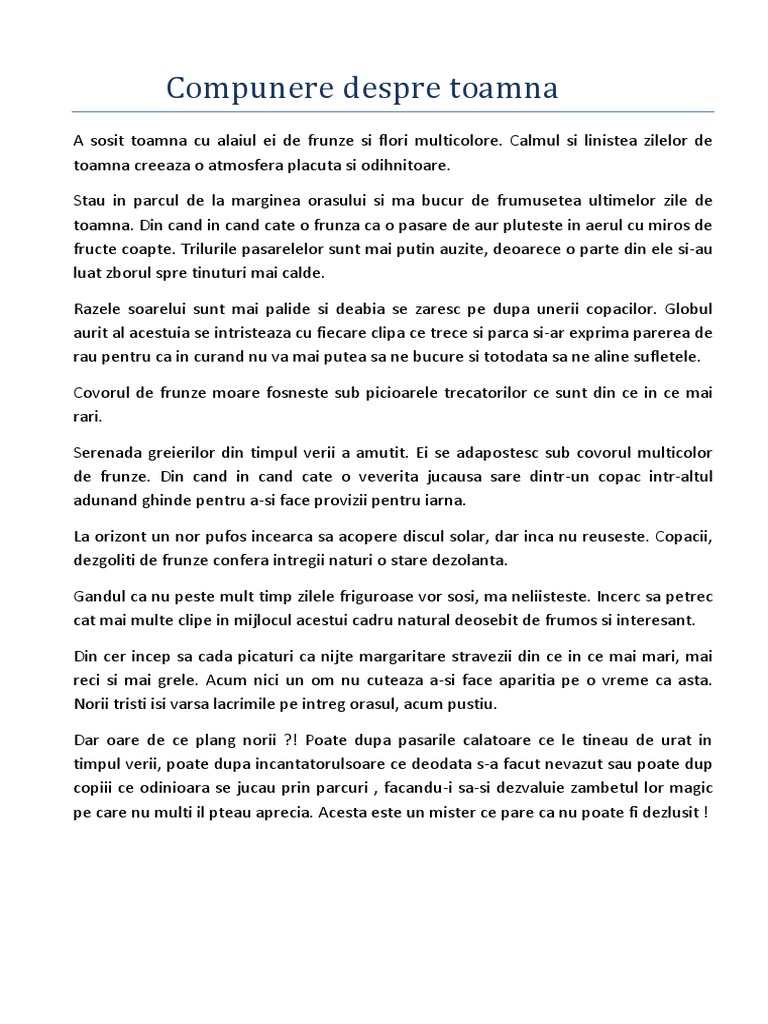 Am Nevoie De O Compunere De 10 Replici Intre O Frunza De Toamna