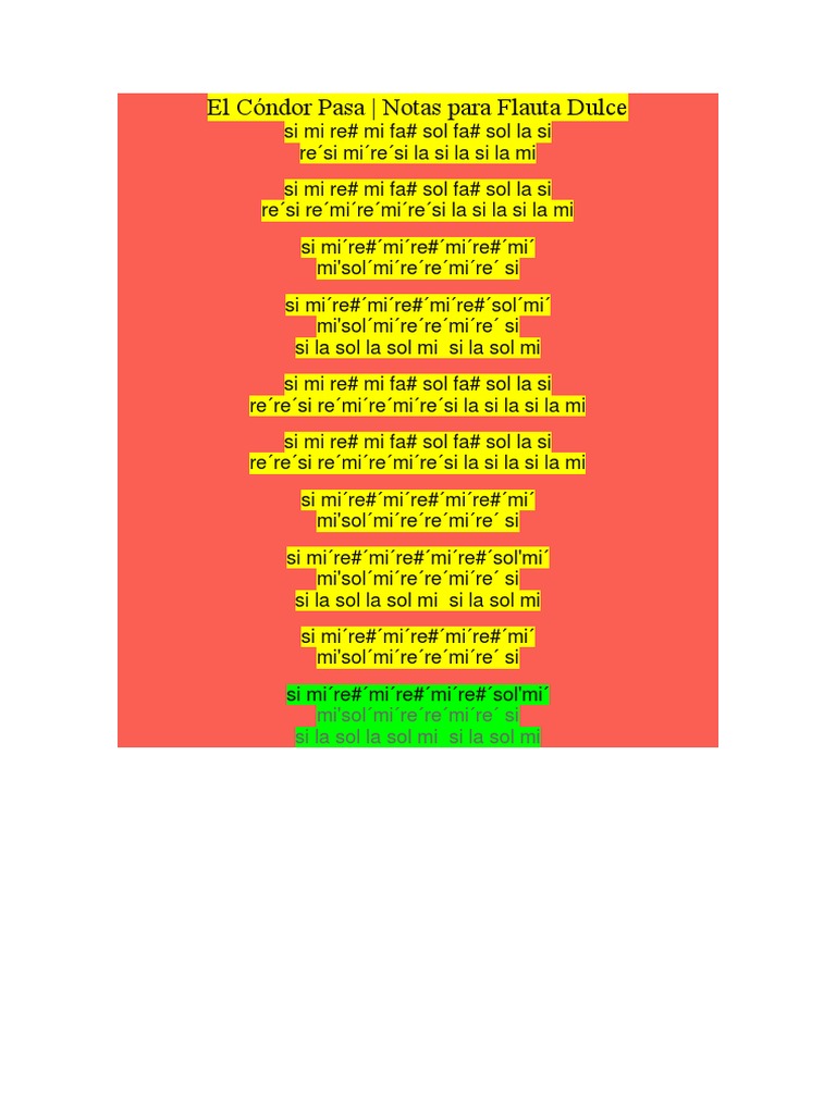 El Condor Pasa En Flauta Dulce Tutorial Con Notas Musicales