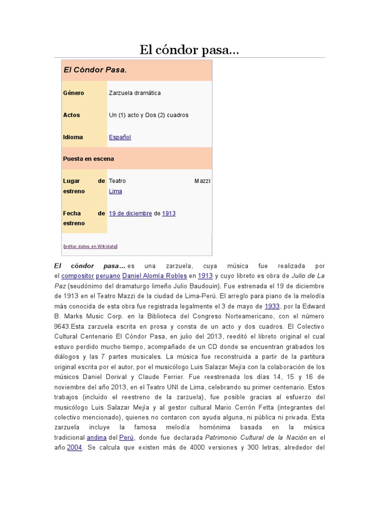 El Condor Pasa Zarzuela Wikiwand