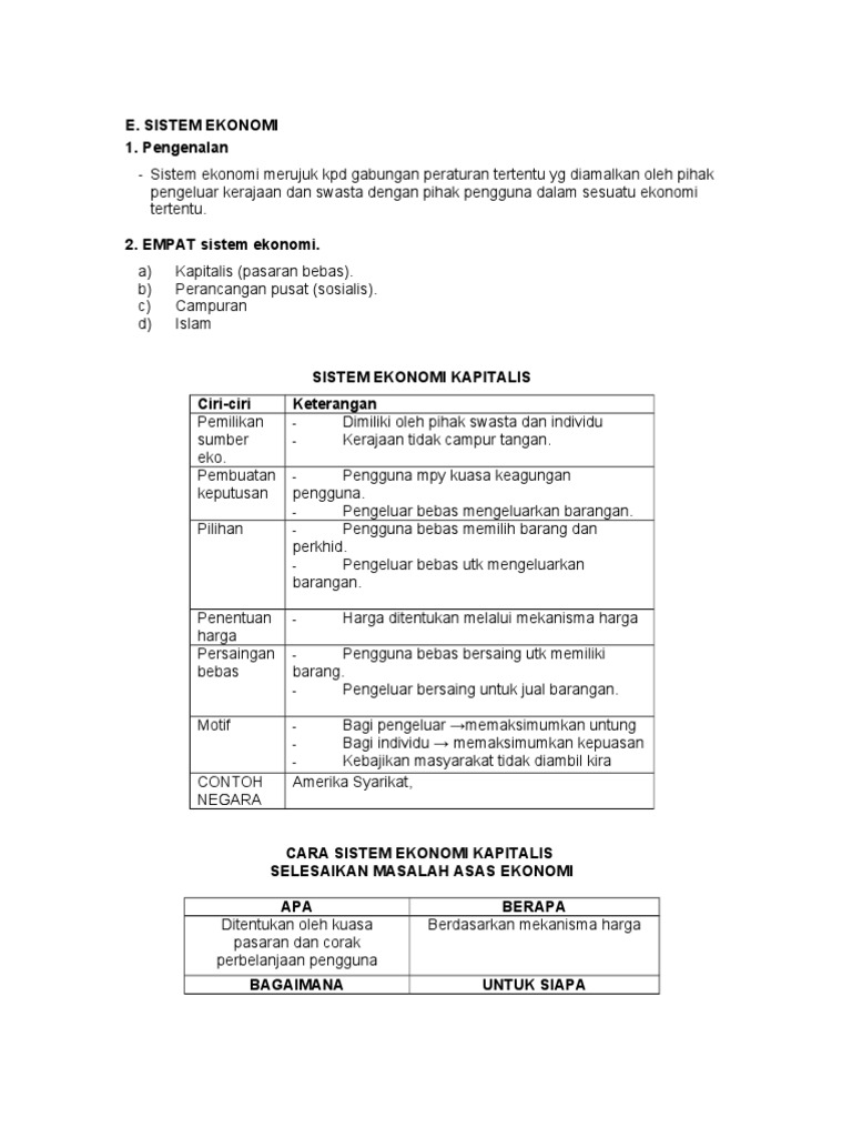 Sistem Ekonomi Kapitalis Dan Perancangan Pusat