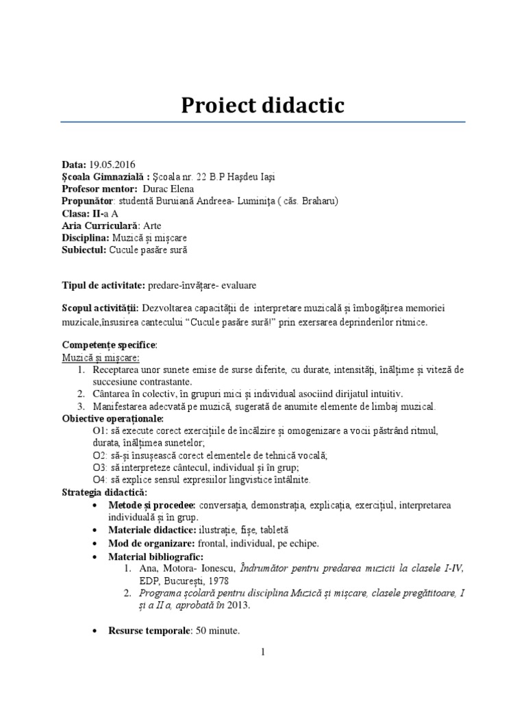 Proiect Muzica Cucule Pasare Sura
