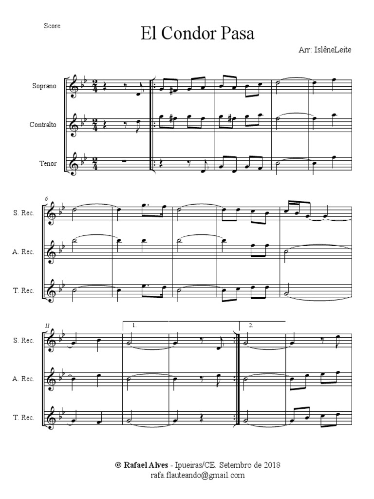 El Condor Pasa Partitura De Flauta Violin Y Oboe E Instrumentos