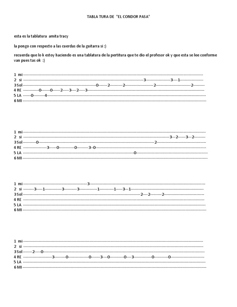 El Condor Pasa Tab Melodia Facil Guitarra Principiantes