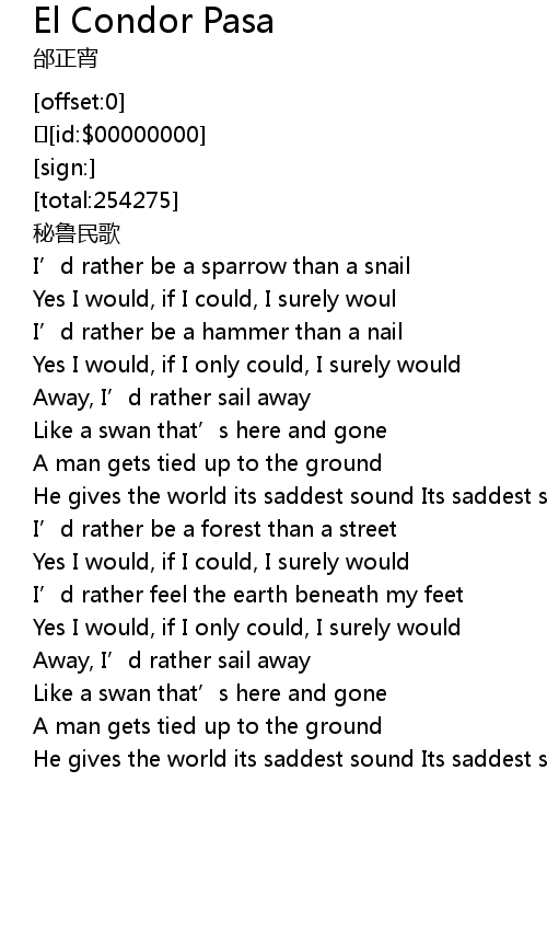 El Condor Pasa Lyrics By Paul Simon I D Rather Be A