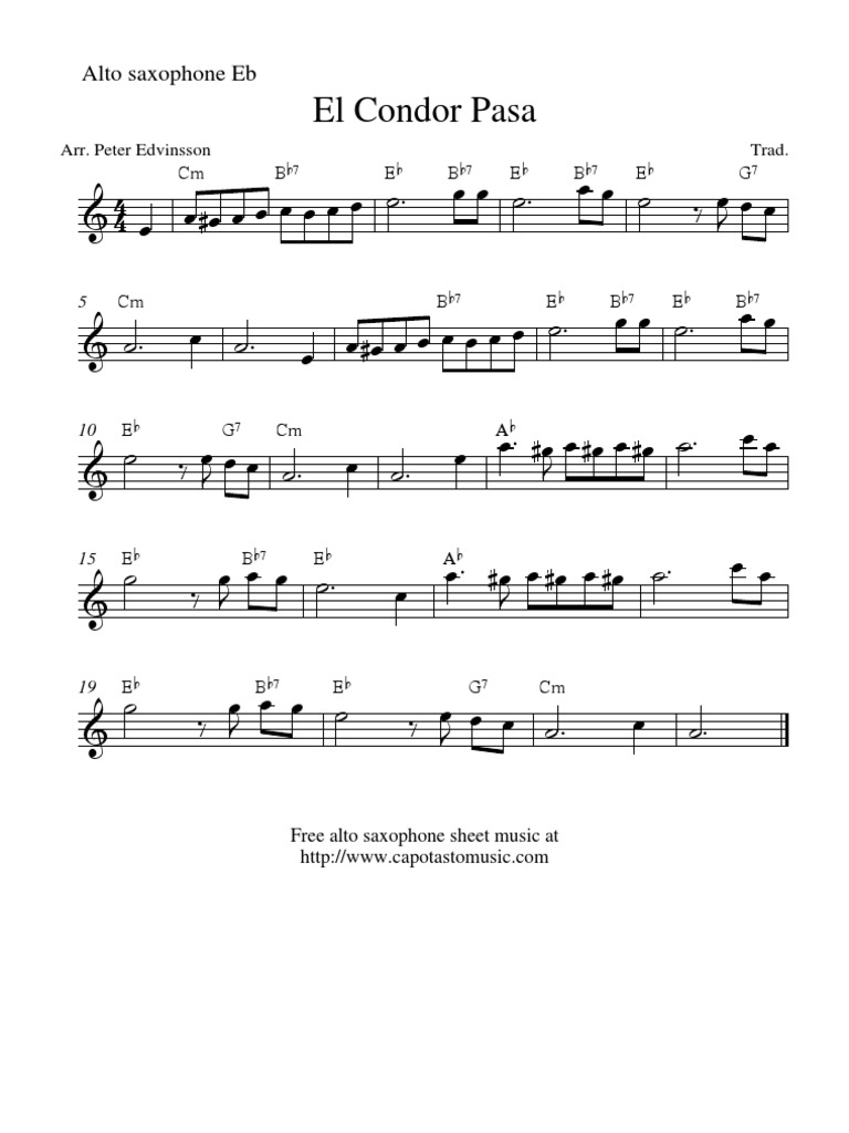 El Condor Pasa Partitura Para Saxofon If I Could Sax Score