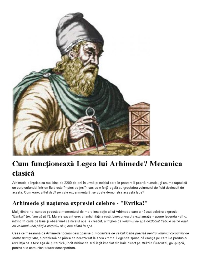 Cum Funcţionează Legea Lui Arhimede Mecanica Clasică Arhimede Si