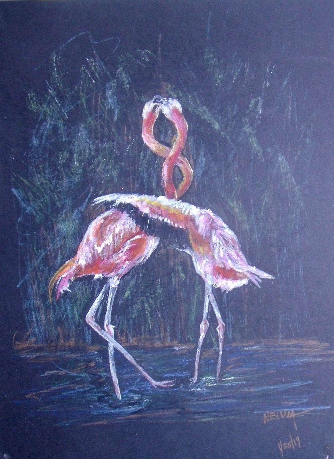 Pink Flamingo Oil Pastel 28x38 My Art By Aleksandra S 2018