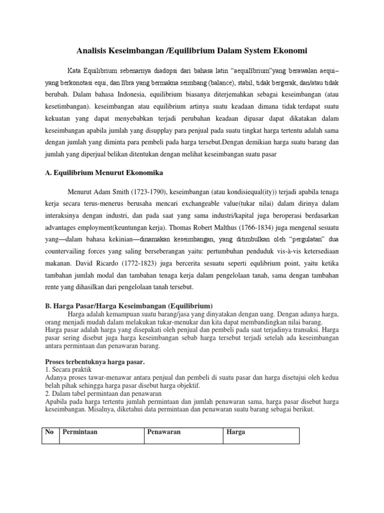 Analisis Keseimbangan Equilibrium Dalam System Ekonomi