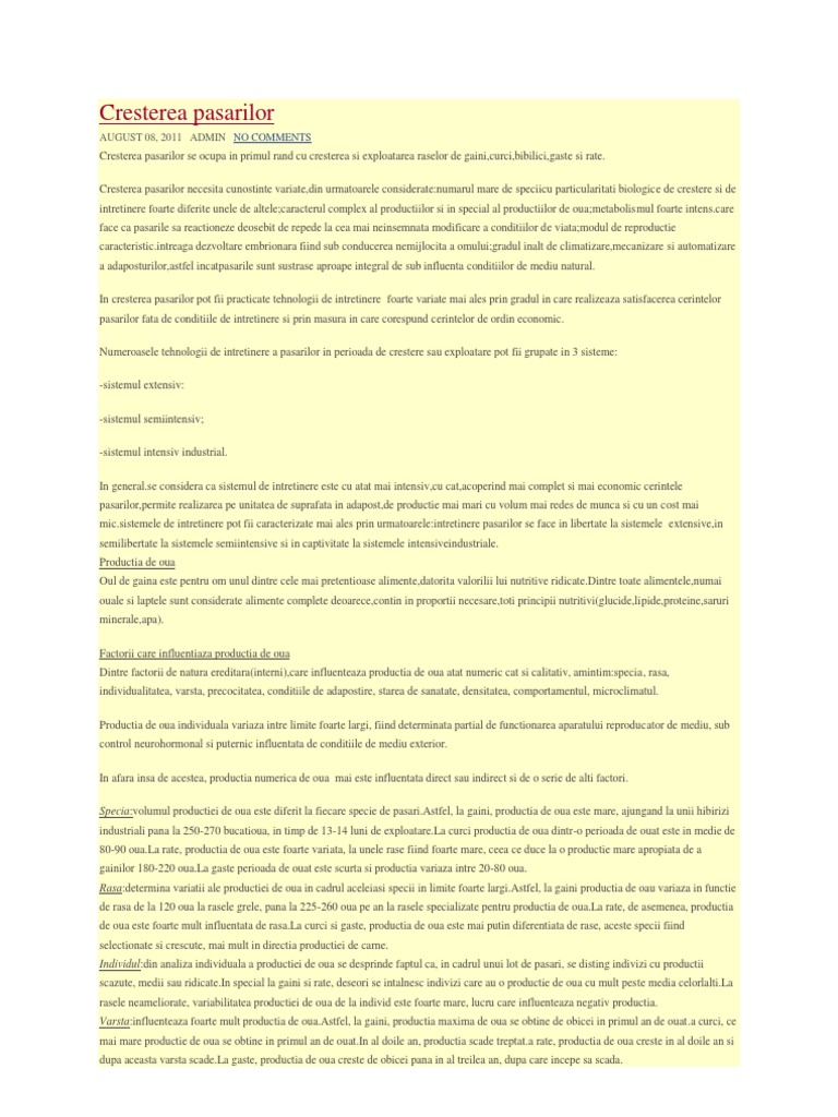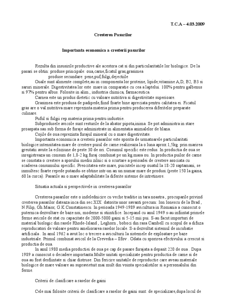 Creșterea și Industrializarea Puilor De Carne Fragment By Total