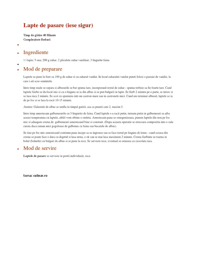 Reteta Lapte De Pasare Iese Sigur