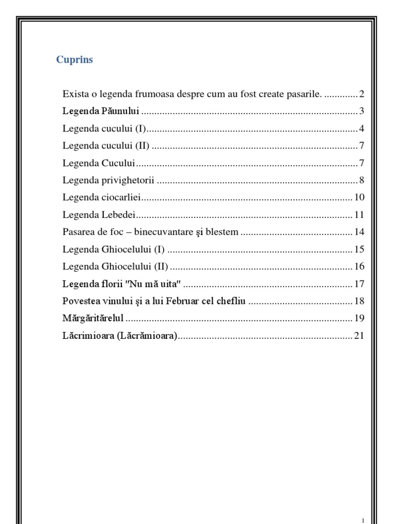 Legende Despre Pasari Folclor Moldovenesc