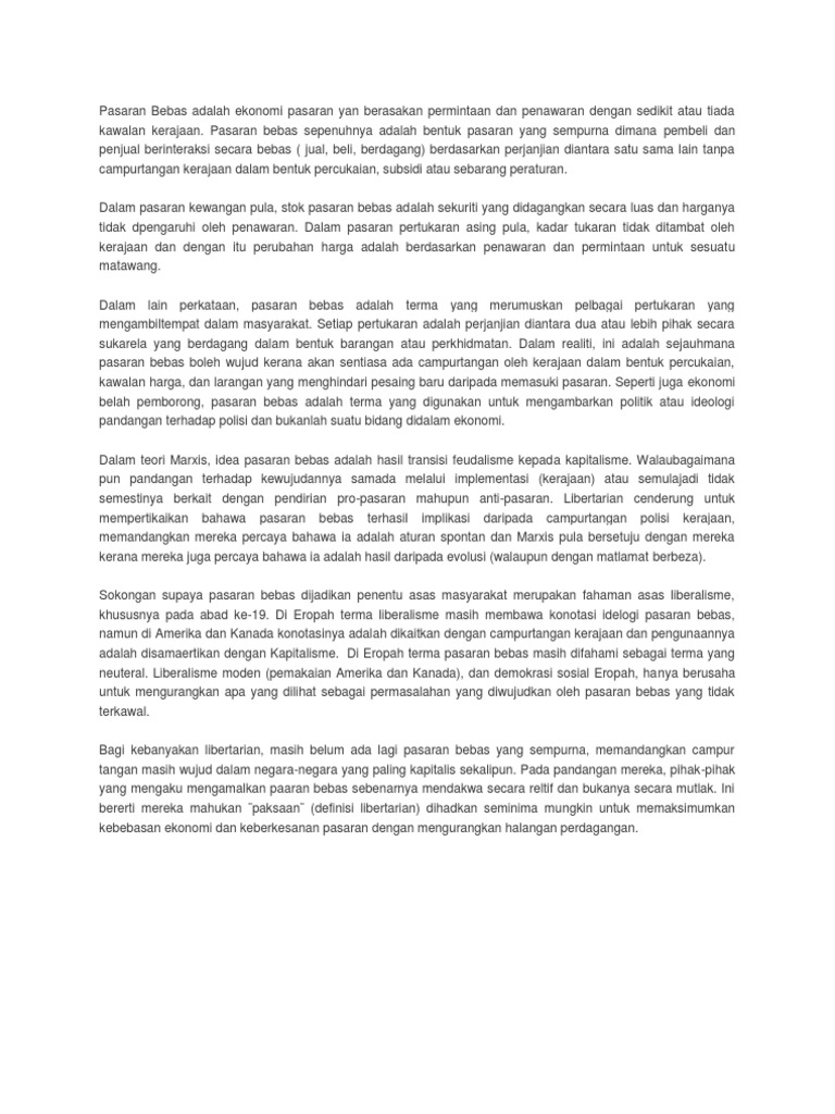 Sistem Ekonomi Pasar Bebas Pengertian Penjelasan Pembahasan
