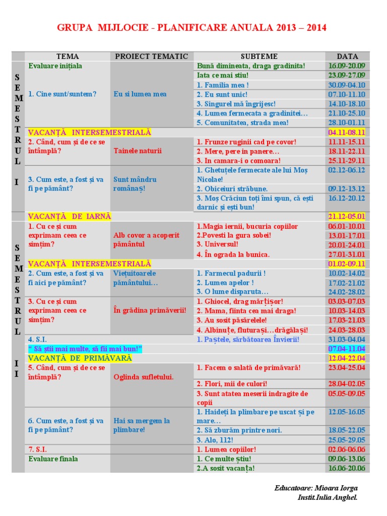 Planificare Anuala Grupa Mijlocie