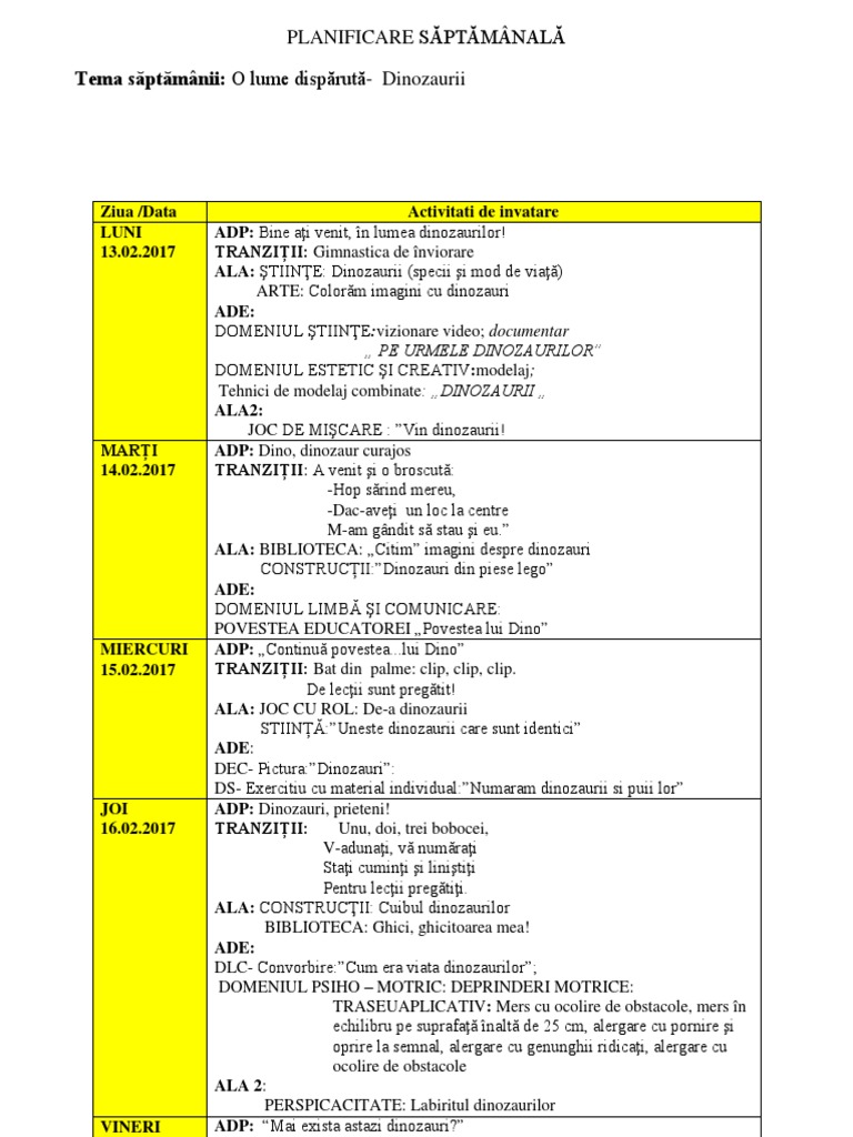 Doc Planificare O Lume Disparuta Dinozaurii Ionela Balint