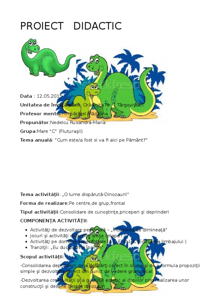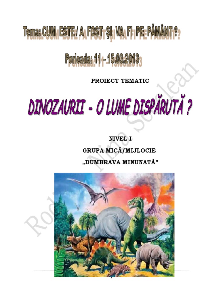 Proiect Tematic Dinozaurii O Lume Dispărută Rodicanina