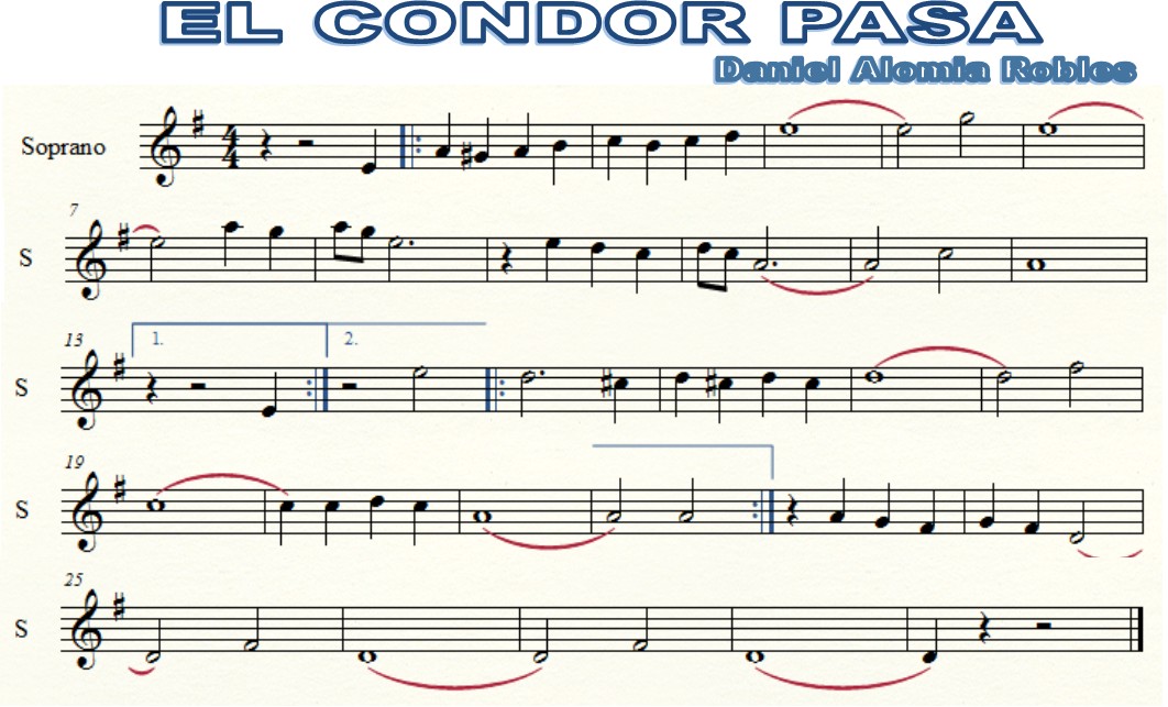 El Condor Pasa Partitura Facil Con Notas De Flauta Violin Oboe