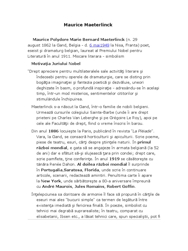 Maurice Maeterlinck Sau Pasărea Albastră A Modernismului De Pușa