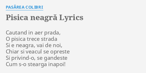 Pisica Neagră Lyrics By Pasărea Colibri Cautand In Aer Prada