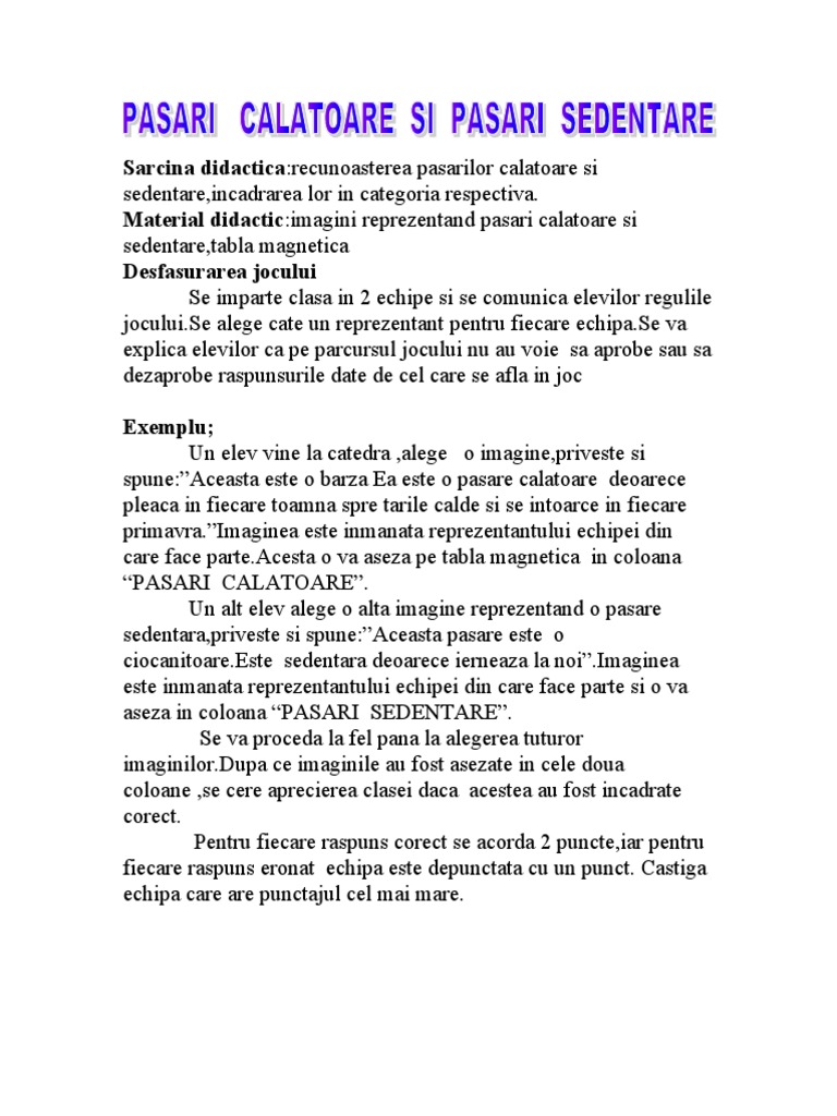 Pasari Calatoare Si Pasari Sedentare Joc Didactic