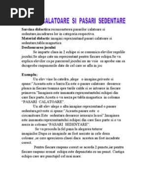 Pasari Calatoare Si Pasari Sedentare Joc Didactic
