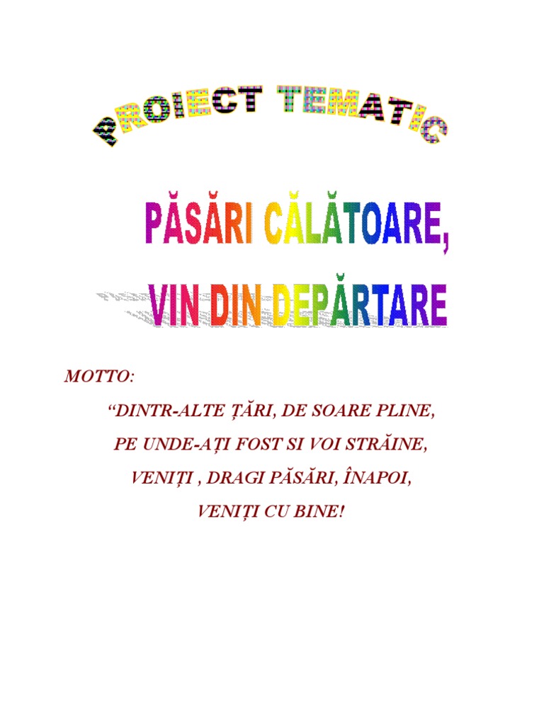 Doc Proiect Tematic Pasari Calatoare Faza I Obiective De