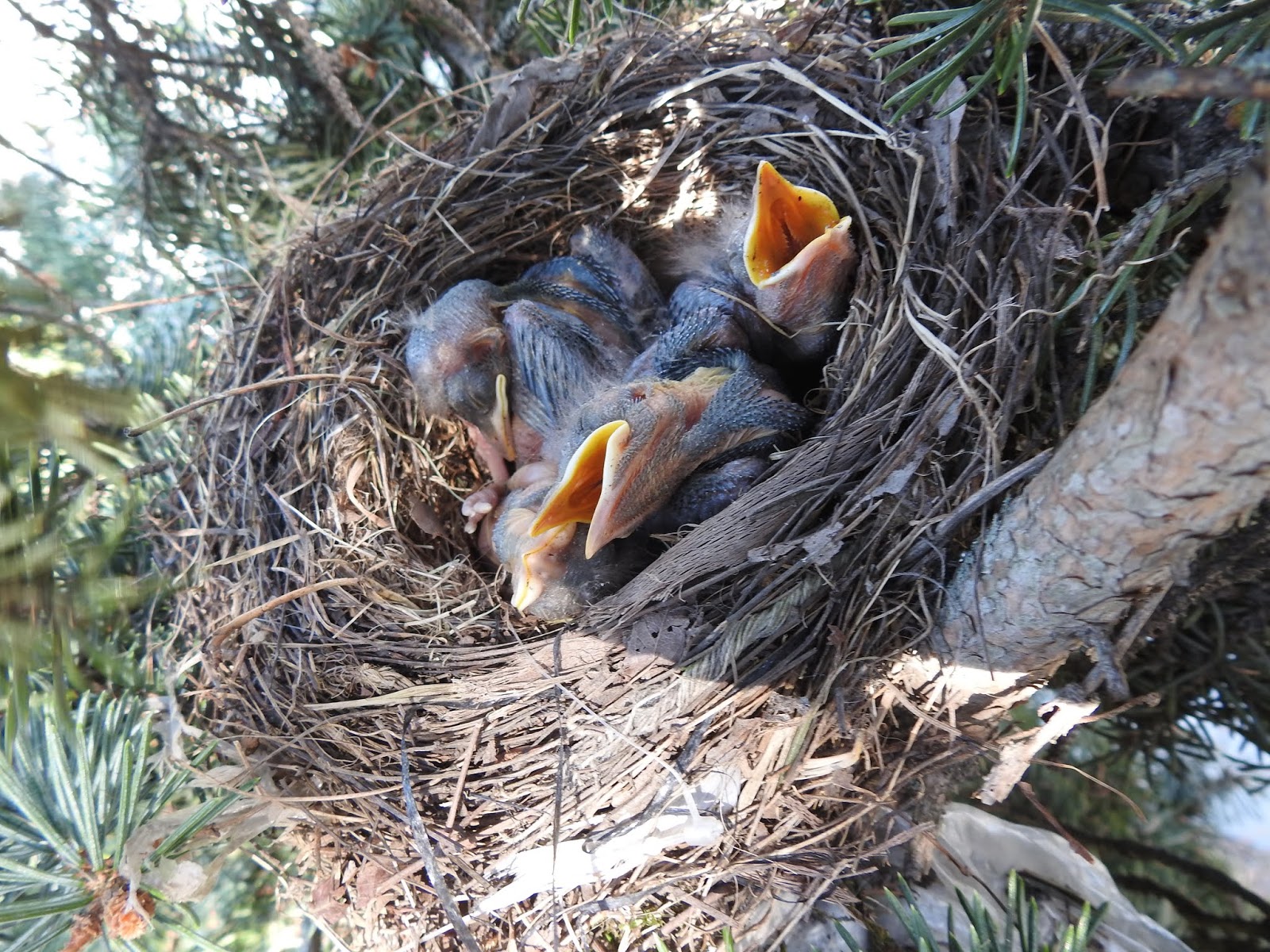 Pasari Din Romania Mierla 4 Pui Mici Turdus Merula
