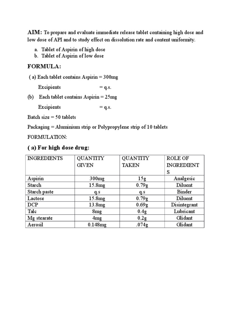 Formula For 1 Tablet 200 Mg Of Different Concentration Of Sodium